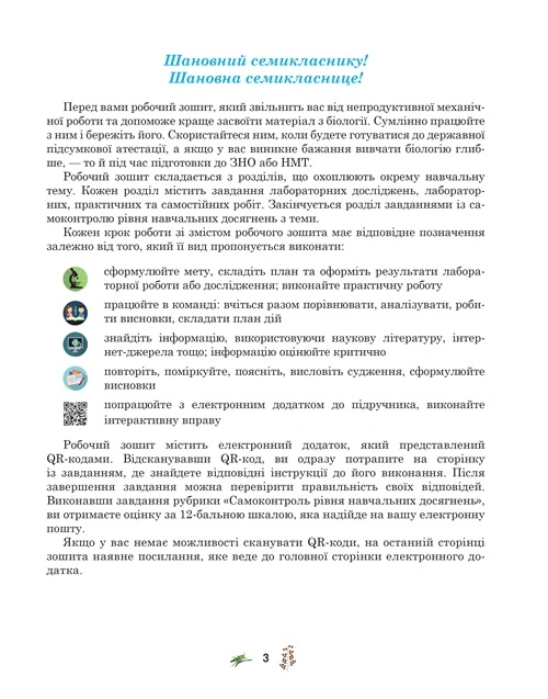 Робочий зошит містить е-додаток. Використання робочого зошита звільнить учня/ученицю від непродуктивної механічної роботи, зорієнтує на обов’язкові результати навчання, сприятиме творчому підходу до засвоєння знань.
