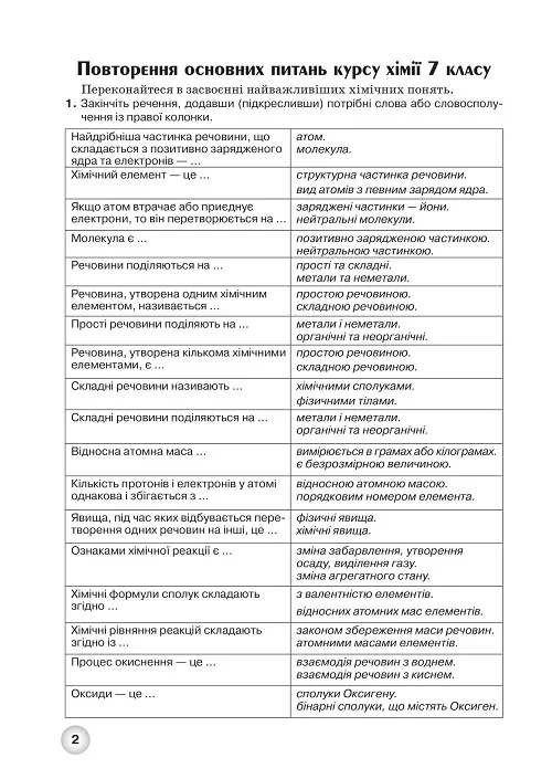 Використання робочого зошиту з хімії учня 8 класу сприятиме підвищенню ефективності навчання, дасть змогу зробити уроки цікавими, створювати “ситуації успіху”, які дозволять кожному учню розвивати свої творчі здібності, об’єктивно оцінювати власні знання, отримувати задоволення від своєї праці.